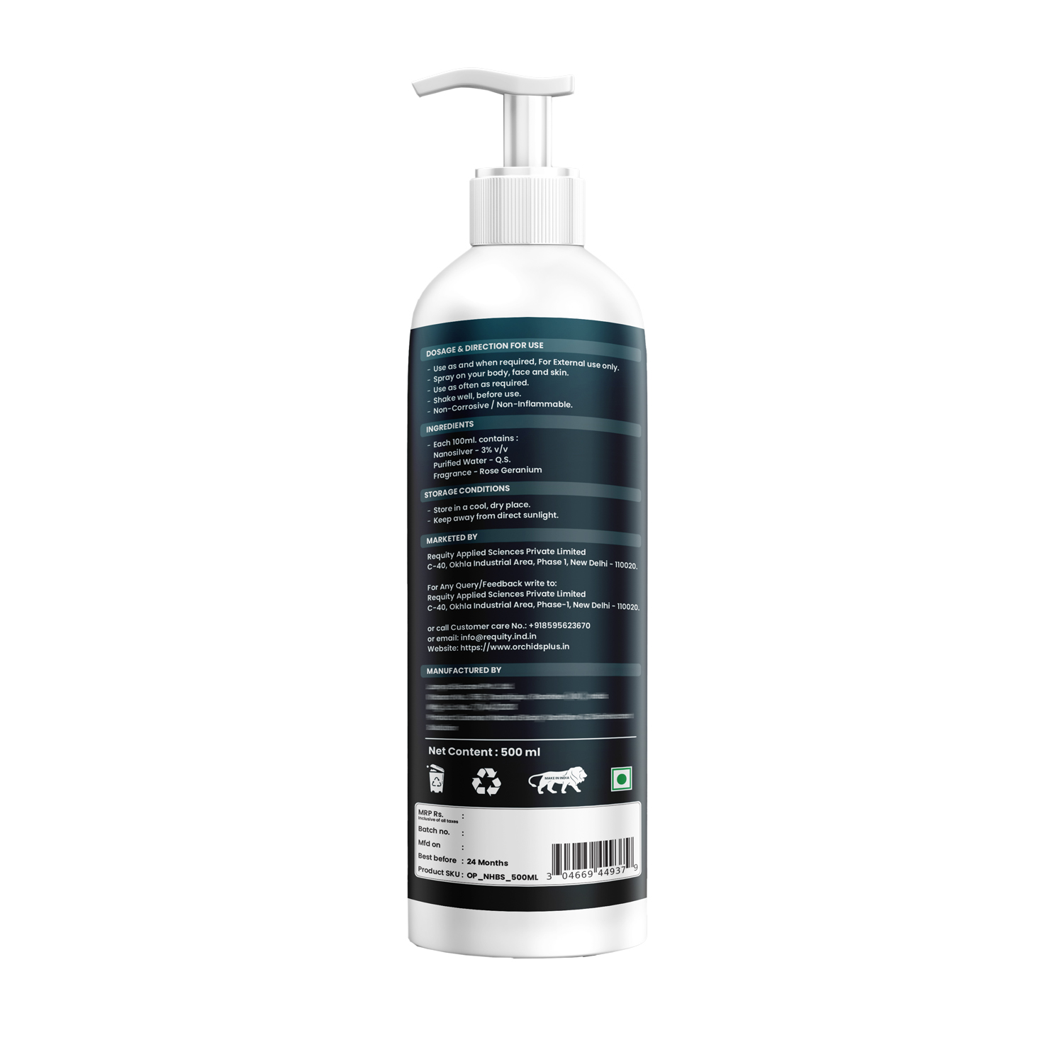 Natural Hand & Body Sanitizer 500 ML Pump | Kills 99.9% Germs | Alcohol Free | Made of Silver Nano Particles | No Stickiness | No Smell